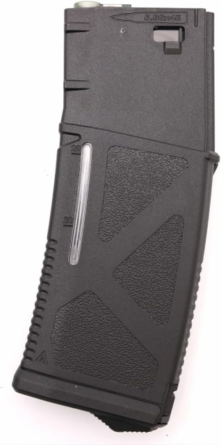 マガジンは、装弾数30発/130発切替可能なスプリング給弾式ノーマルマガジンで、残弾確認用窓があり、残弾が少なるとBB弾が下から減っていくのが見え始めます。