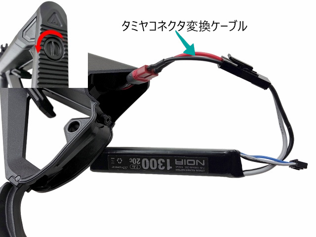 リポバッテリー用コネクタはT型ですが、写真の様にタミヤコネクタ変換ケーブルも付属しているので安心です。
