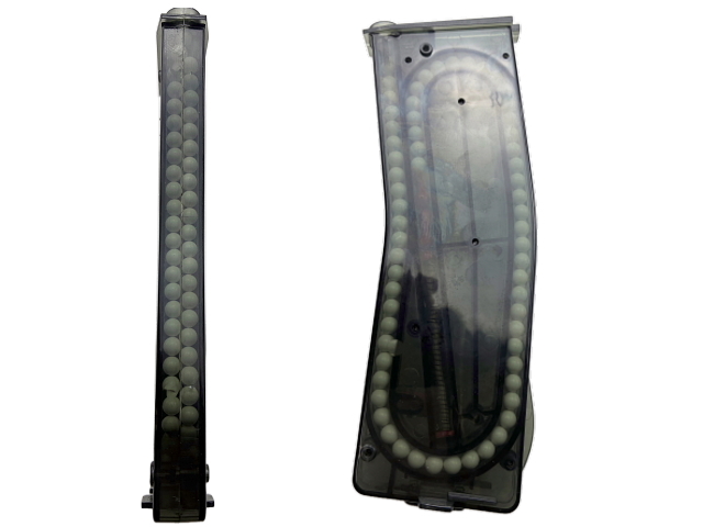 因みに、スプリング給弾のノーマルマガジンにしては装弾数が130発と多いなと思っていたら、ダブルカラム(複列弾倉)だったんですね。