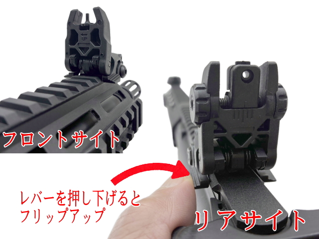 マグプルっぽいサイトはフリップアップ式で、レバーを押し下げると跳ね起きます。