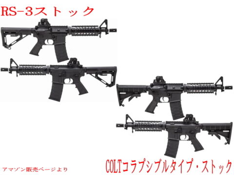 ストックは「COLTコラプシブルタイプ・ストック」と「RS-3ストック」が選べます。