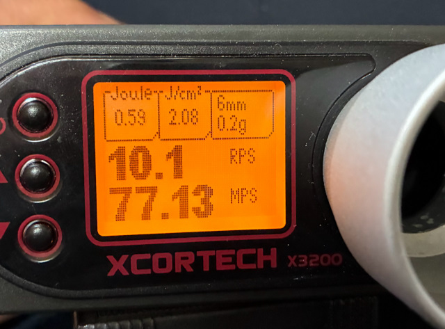 0.20gBB弾の初速は、0.25gBB弾の適正ホップ時の数値です。