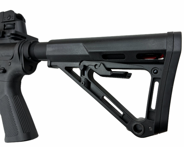 ストックの伸縮は一般的な6ポジションで、バットパットはラバー製です。